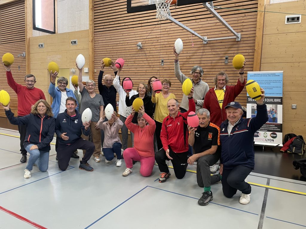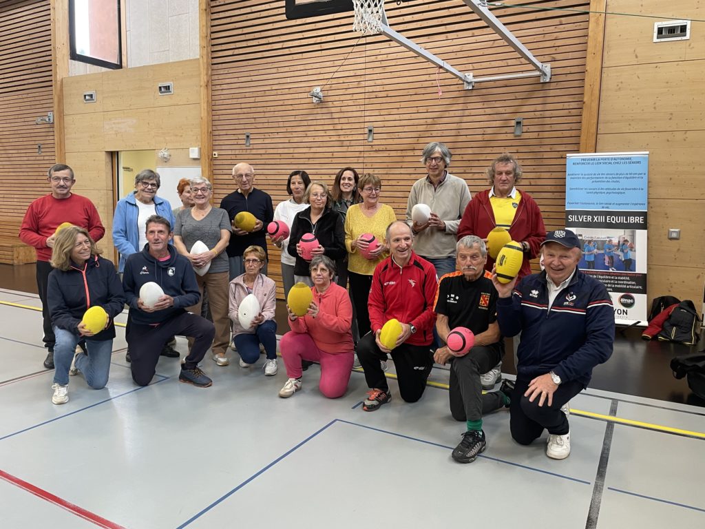 SÉANCE DECOUVERTE DES ATELIERS RUGBY ET ÉQUILIBRE POUR LES SENIORS FRANCHEVILLOIS ! L’activité physique adaptée, c’est la santé! Ce jeudi matin le Comité du Rhône de Rugby à XIII en partenariat avec le CCAS de Francheville a proposé, en cette semaine bleue, une seance découverte des ateliers Silver XIII dédiés à l’équilibre et au bien-être. Spécialement conçu pour répondre aux besoins actuels et offrir des outils pratiques pour un meilleur équilibre de vie, le cycle de 10 séances du programme Silver XIII Equilibre est basé sur des ateliers en double tâche ou cognitivo-moteur visant à renforcer la stabilité physique et mentale à travers des exercices variés et adaptés pour tous, des débutants au plus expérimentés !