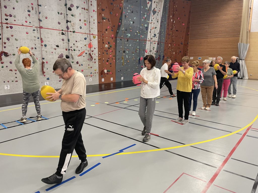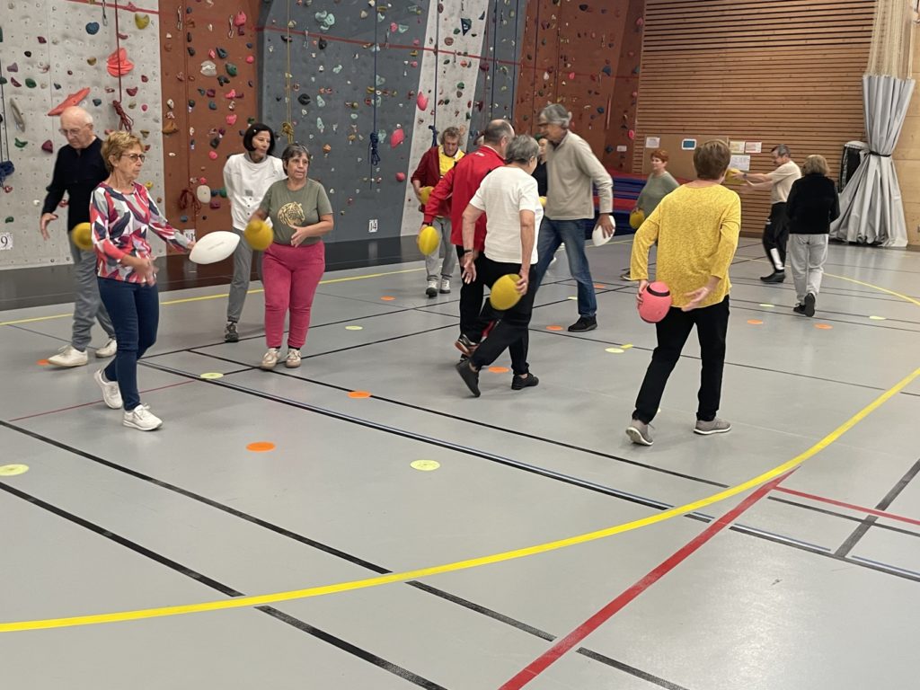 Ce jeudi la séance avait lieu au gymnase Jean Boistard à 11h00 avec 16 seniors. Les ateliers ont été enchaînés avec enthousiasme et dans la bonne humeur avec Christophe Chevalier l’animateur et Jacques Cavezzan Président du Comité du Rhône de rugby à XIII. Un programme composé d’un échauffement avec marche avec ballon, montée de genou, talon fesse, renforcement haut du corps, ateliers équilibre et coordination, ateliers motricité, test équilibre en appui unipodal, et assouplissements. Les participants ont apprécié la dynamique du programme et devraient poursuivre le cycle de 10 séances. La prochaine séance aura lieu le Jeudi 16 Octobre à 11h00 au Gymnase Jean Boistard, et ensuite les ateliers reprendront le jeudi 6 Novembre même heure jusqu’aux vacances de Noël.