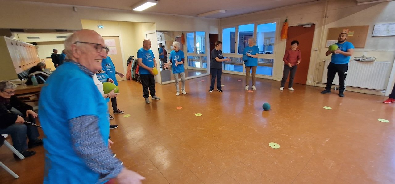 Hier matin c’était jour de reprise pour les ateliers Silver XIII Équilibre au Centre social de Champvert de Lyon après 2 semaines de trêve liée aux vacances de Toussaint. Vous étiez 16 seniors pour cette reprise sous la conduite de Rayan et Sébastien du Comité du Rhône de Rugby à XIII.
