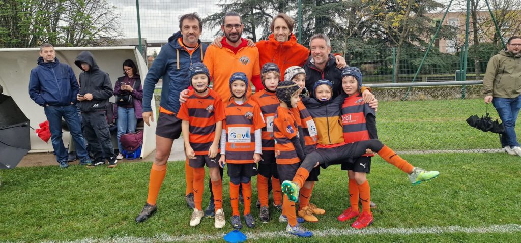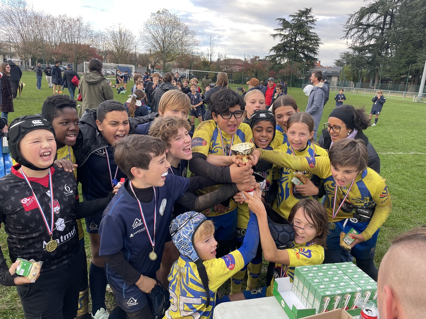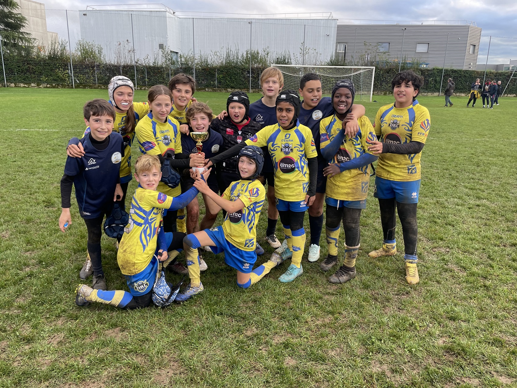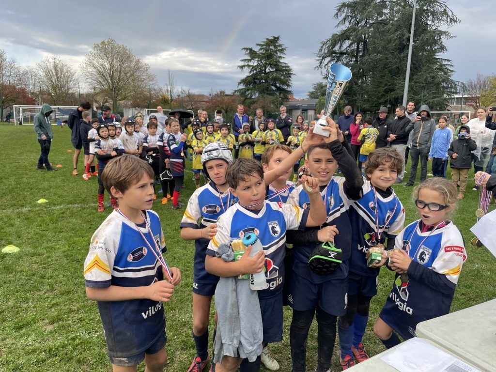 En Poussins il y avait 6 équipes et de belles rencontres. Ce sont les jeunes de Caluire qui détrônent les dauphins de Décines (2eme) suivi des Lions de SFRL. Dans la catégorie Benjamins, il y avait aussi de belles prestations et à noter que l’entente Décines/Francheville a terminé le tournoi invaincue avec 5 succès et un match nul. Elle coiffe sur le fil la formation des Lions de SFRL 1 et 2 et la formation de Caluire/Tigers. A noter la révélation de la benjamine Louise De Souza des Eagles de Francheville qui inscrit 5 essais dont deux en finale. Un grand merci aux participants, aux parents présents malgré la pluie, aux éducateurs , aux arbitres bénévoles et aux bénévoles du club de VVRL autour du Président Colin Niez pour cette organisation sans faille.