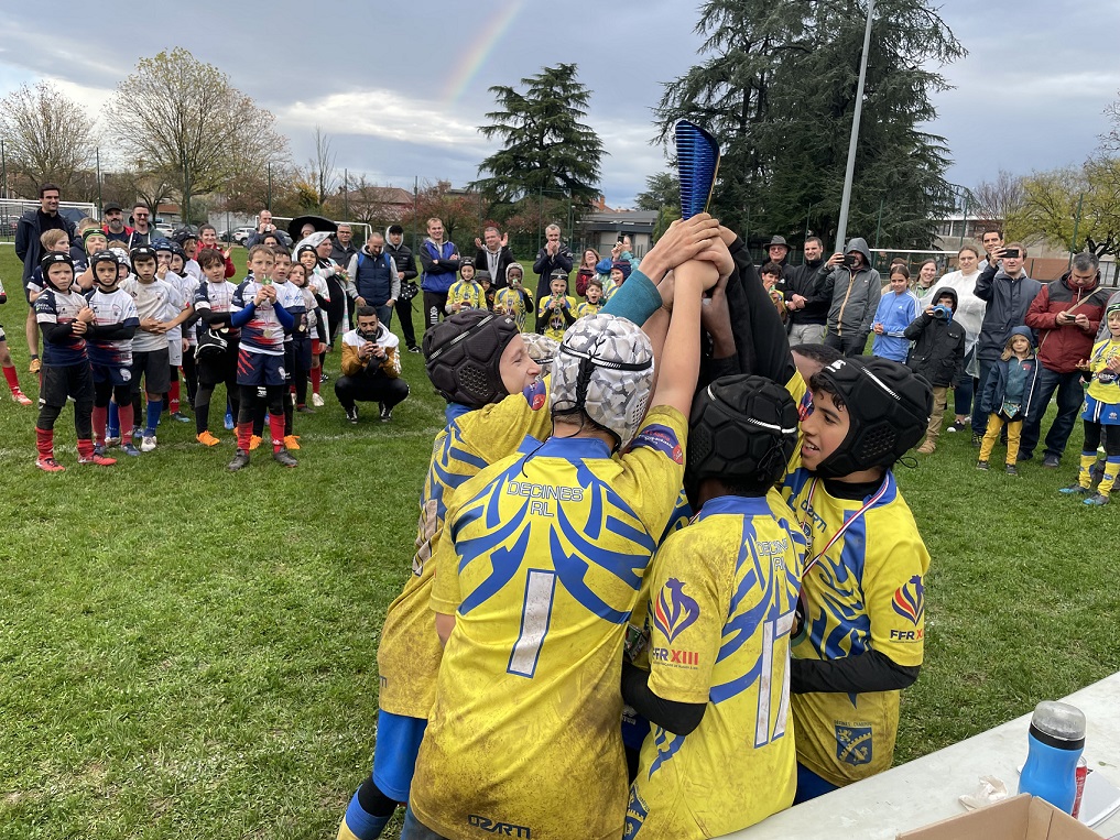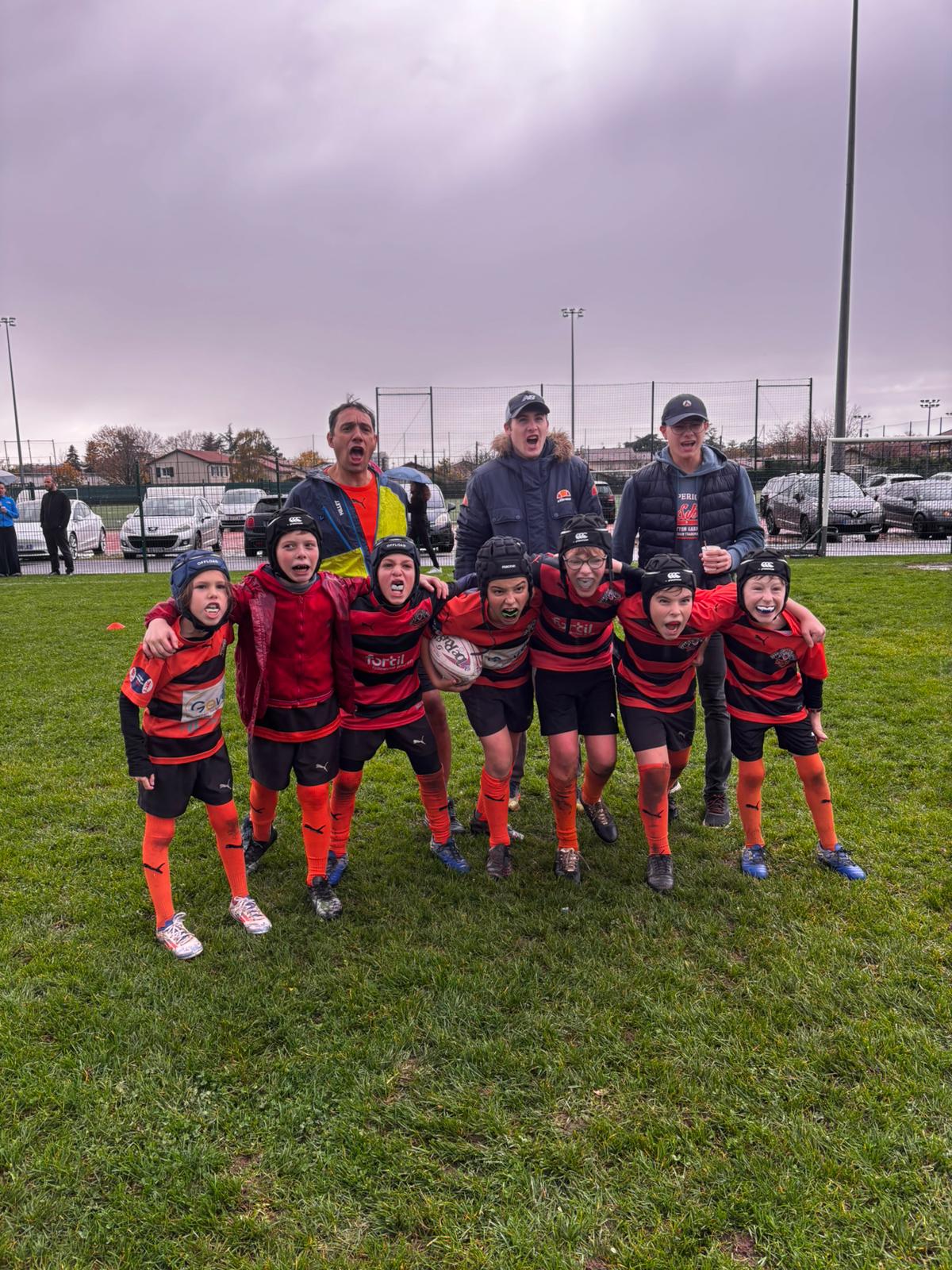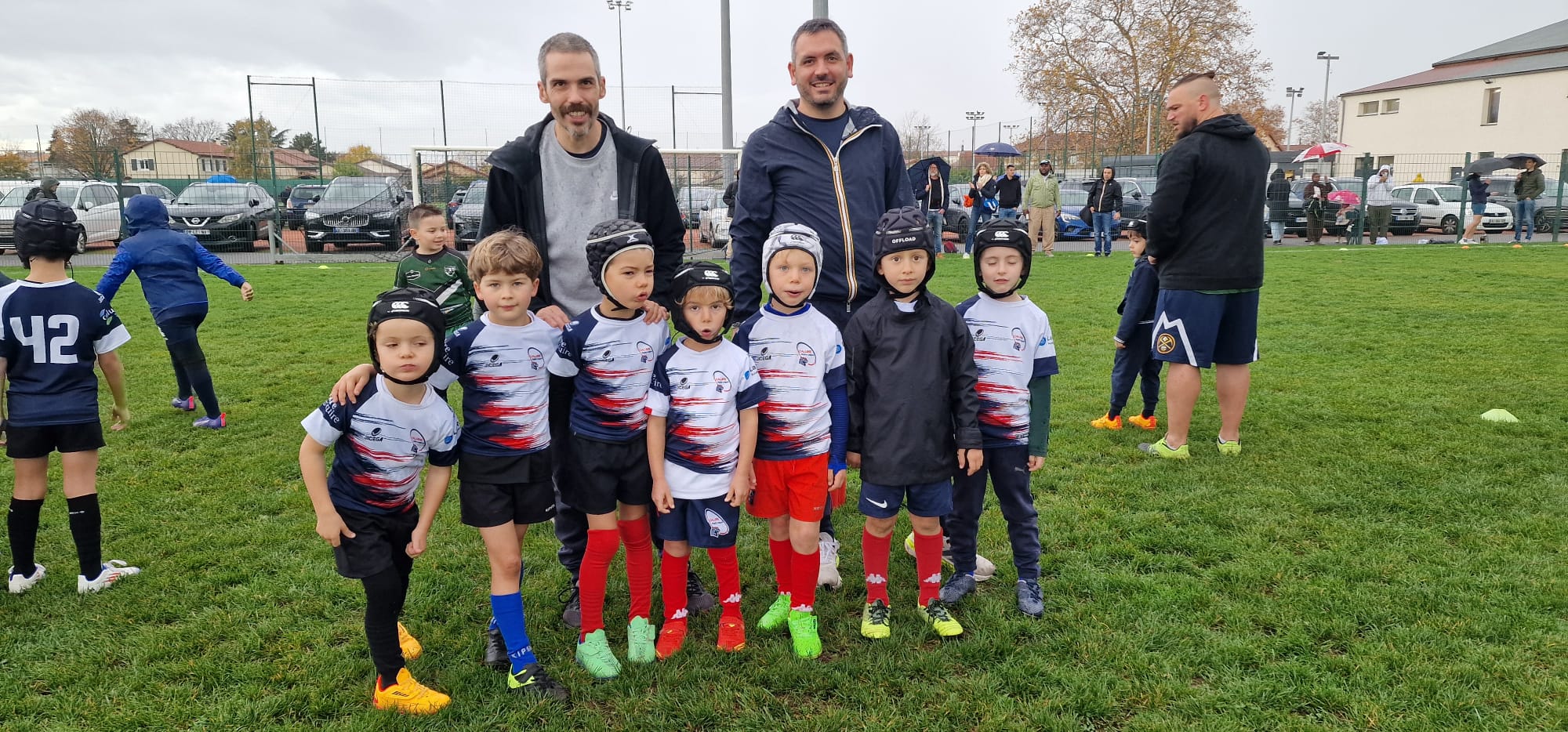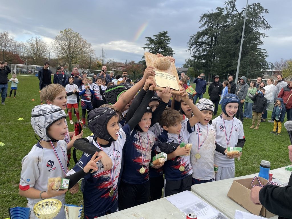En Poussins il y avait 6 équipes et de belles rencontres. Ce sont les jeunes de Caluire qui détrônent les dauphins de Décines (2eme) suivi des Lions de SFRL. Dans la catégorie Benjamins, il y avait aussi de belles prestations et à noter que l’entente Décines/Francheville a terminé le tournoi invaincue avec 5 succès et un match nul. Elle coiffe sur le fil la formation des Lions de SFRL 1 et 2 et la formation de Caluire/Tigers. A noter la révélation de la benjamine Louise De Souza des Eagles de Francheville qui inscrit 5 essais dont deux en finale. Un grand merci aux participants, aux parents présents malgré la pluie, aux éducateurs , aux arbitres bénévoles et aux bénévoles du club de VVRL autour du Président Colin Niez pour cette organisation sans faille.