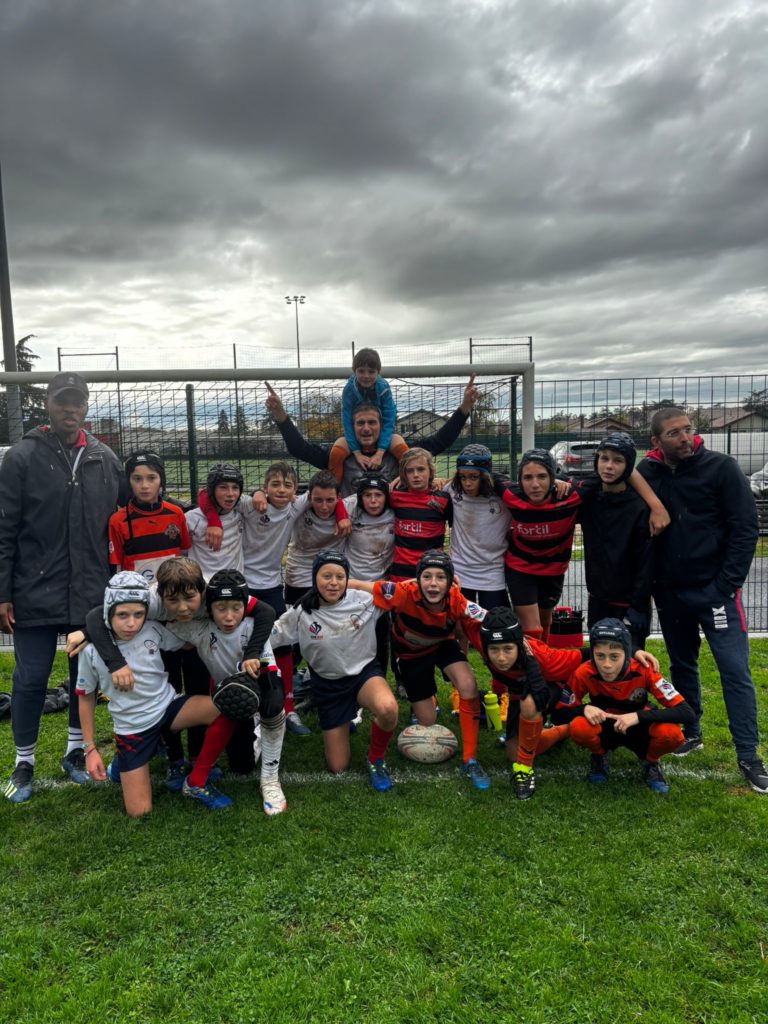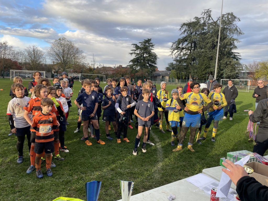 Malgré une météo incertaine et pluvieuse le matin les dirigeants du club de VVRL autour du Président Colin Niez ont maintenu le tournoi mensuel qui a rassemblé près de 250 jeunes répartis sur 30 équipes (10 eq U7 – 10 eq U9 – 6 eq U11 et 4 équipes U13) en provenance des écoles de rugby de Caluire, Décines, Villeurbanne, Vaulx en Velin, Francheville et Sainte Foy lès lyon.
