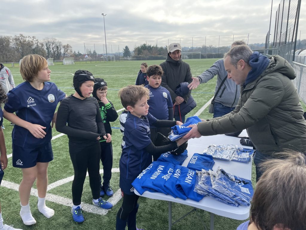samedi s’est déroulé l’entraînement hebdomadaire des rugbymen au Parc Sportif de francheville. Une petite surprise attendait tous les jeunes licenciés avec la remise des équipements pour la présente saison…Il y avait beaucoup de sourires,et bonne humeur chez les grands comme les plus petits. Le Père Noël est passé avec quelques jours d’avance au parc Sportif. Fréderic et Stéphane ont procédé à la remise des maillots aux prénoms des enfants, short et chaussettes pour une nouvelle saison qui s’annonce sous de bons auspices, puisque les benjamins ou U13 des Eagles associés à Décines RL ont terminé invaincus lors de la deuxième étape du challenge Avenir des écoles de rugby qui se déroulait mi-novembre à Vaulx en Velin. !