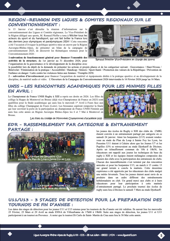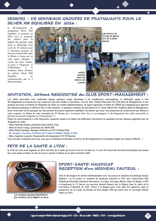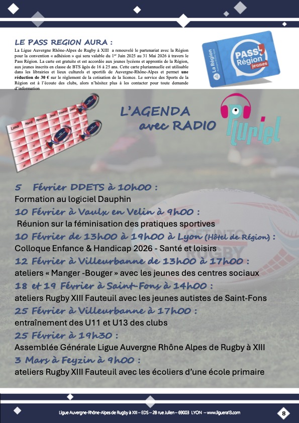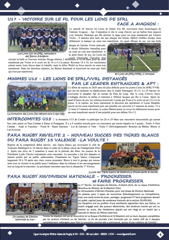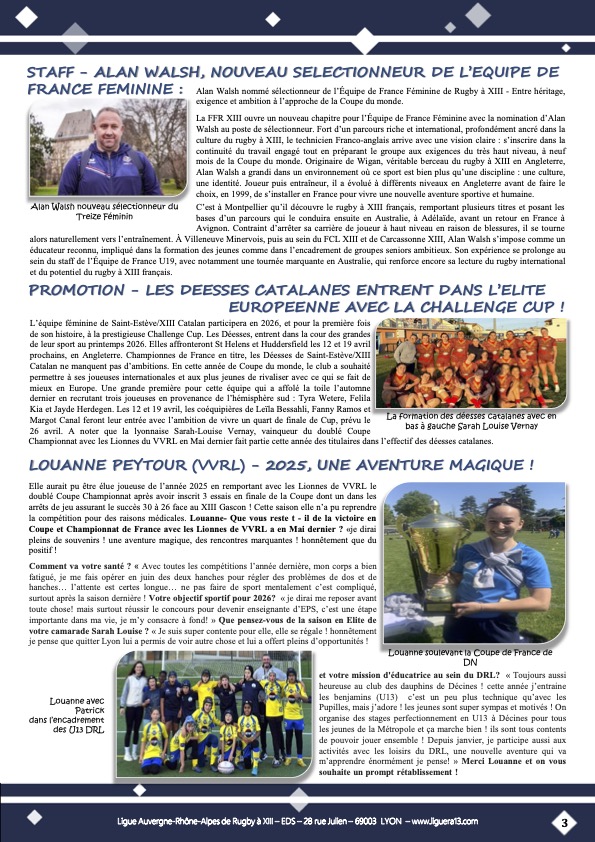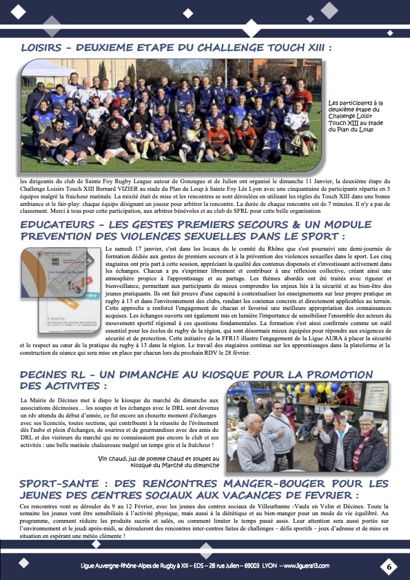 Vous trouverez ci-joint le bulletin N°148 de Janvier 2026 de la Ligue Auvergne Rhône-Alpes de Rugby à XIII avec en Une » Une bonne année qui demarre activement ! » et aussi parmi les faits marquants: