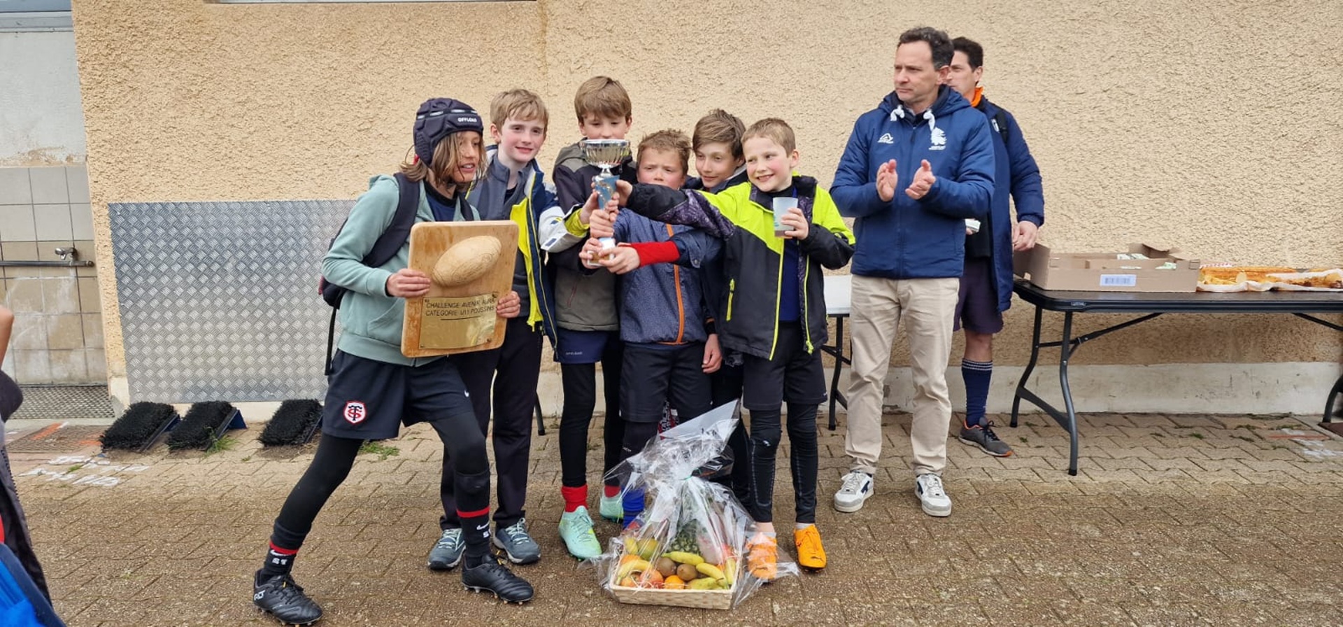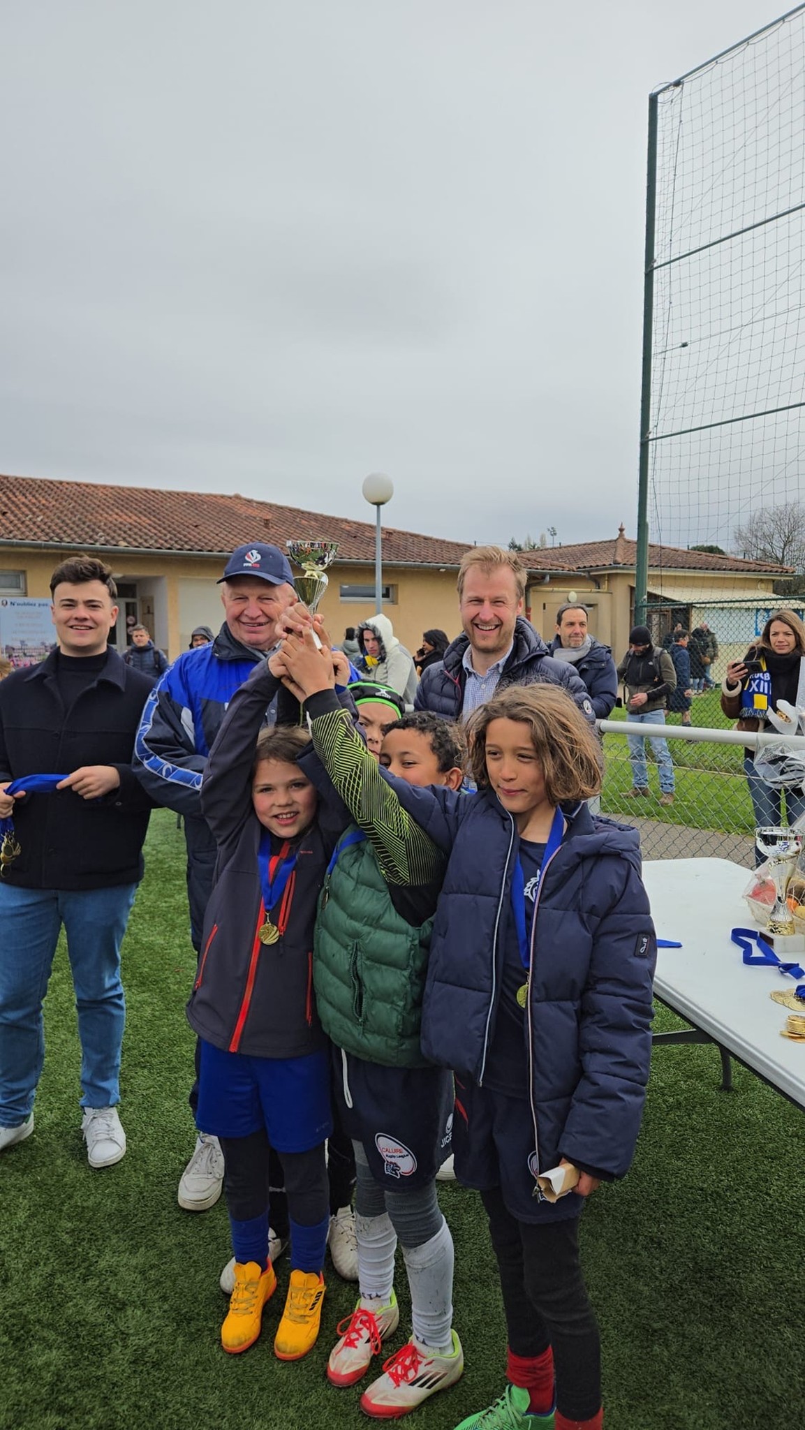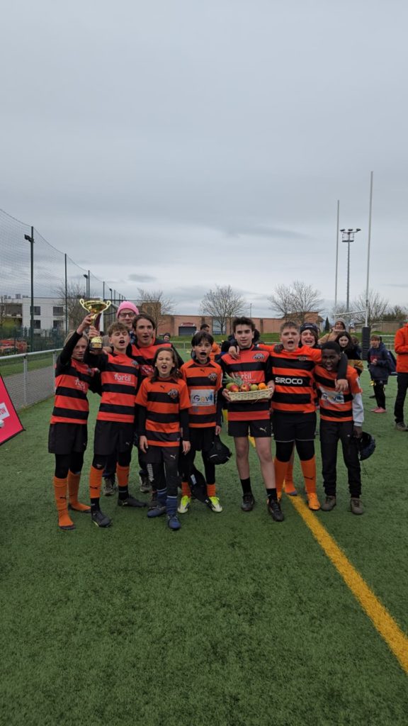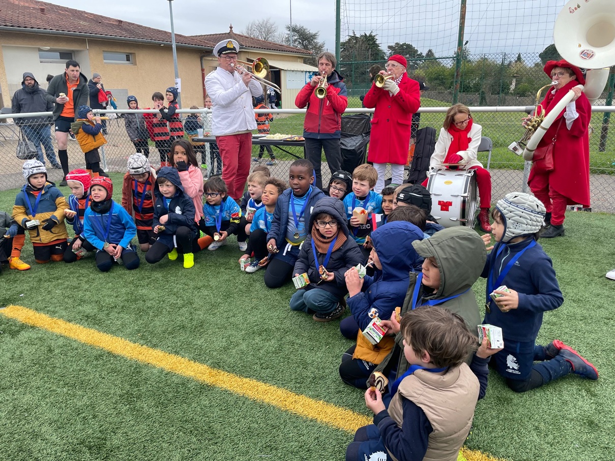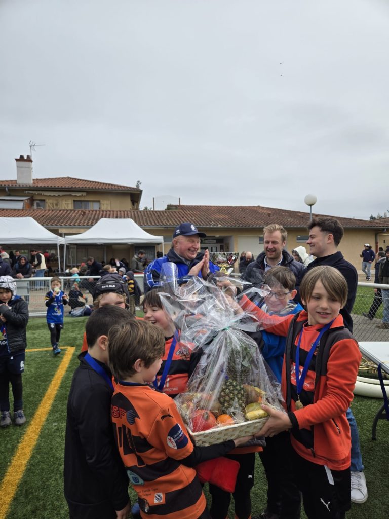 Ce matin avait lieu la cinquième étape du Challenge Avenir des écoles de rugby à XIII au stade du Plan du Loup organisée par l’équipe des bénévoles du club de Sainte Foy Rugby League autour de Julien son Président. Ce tournoi a rassemblé plus de 230 participants répartis en 30 équipes en provenance des clubs de Vaulx en Velin – Décines – Caluire – Francheville, des Tigers de Villeurbanne et de Sainte Foy Lès Lyon dans les catégorie U7 -U9 -U11 et U13. Tous les enfants affichaient un large sourire – avec 8 équipes de U7 – 9 équipes de U9 – 9 équipes de U11 et 6 équipes de U13. La remise des récompenses (médailles pour les U7 ) et médailles + trophées pour les U9 U11 et U13 ont eu lieu à 12h30. Afin d’honorer la mémoire de Jean-Claude Muller grand dirigeant bénévole, le club avait invité la Fanfare les Gabinets. En pupilles (U9) U9 les Tigers terminent en pole position devant DRL2 et CRL1 – En Poussins (U11) ce sont les jeunes de Caluire 1 devant SFRL1VVRL, SFRL2 et DRL et en Benjamins (U13) les Tigers de Villeurbanne réalisent un sans faute devant Décines/EFRL et SFRL2. Merci à tous les participants, arbitres, éducateurs, et à toute l’équipe de bénévoles des Lions de Sainte Foy Rugby League pour cette organisation sans faille. Prochain tournoi le 25 Mars à Villeurbanne![]()