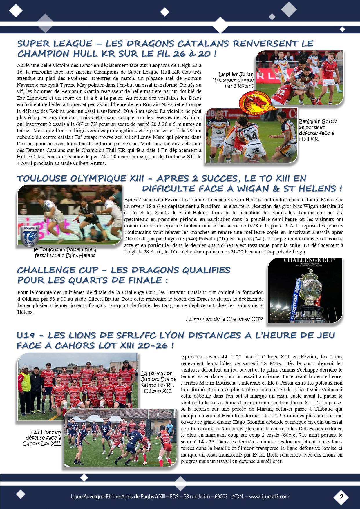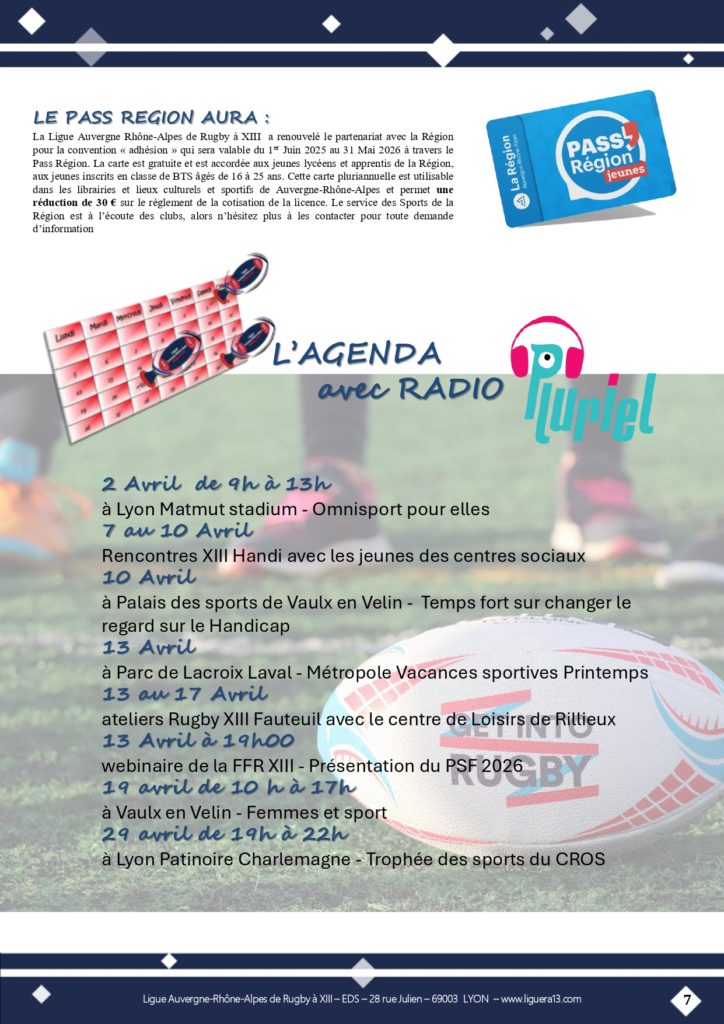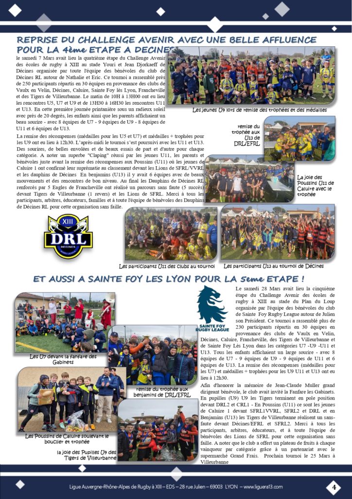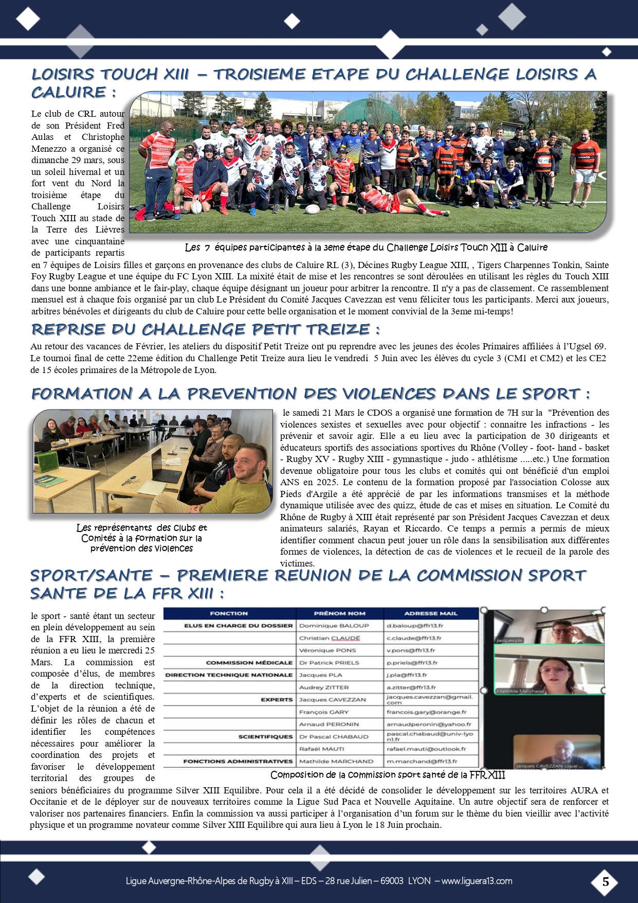 Vous trouverez ci-joint le bulletin N°150 de Mars 2026 de la Ligue Auvergne Rhône-Alpes de Rugby à XIII avec en Une » Deux challenges Avenir pour redelarrer en fanfare! et aussi parmi les faits marquants: