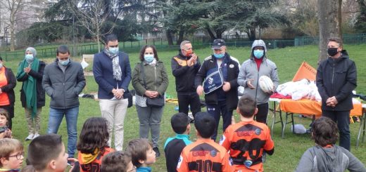Ce matin avait lieu l’inauguration du nouveau composteur de l’espace Jean Monnet au Tonkin en présence du Maire M. Cedric Van Styvendael. Accueilli par Jacques Cavezzan, habitant et élu à l’Office des Sports de Villeurbanne, et Dale Harrison Président du club des Tigers de Charpennes Tonkin, un club de quartier qui est passé de 10 jeunes en 2018 à plus de 60 licenciés aujourd’hui . Dale Harrison a présenté les différents projets du club qui allie activités sportives avec le rugby à XIII et leurs dimensions intergénérationnelles avec une section Loisirs FIT XIII et le silver XIII Equilibre pratiqué avec le centre social du Tonkin, des initiatives culturelles telle que le cinéma avec la réalisation d’une websérie avec la Cinéfabrique et des initiatives éco-citoyennes avec l’écologie, qui est la passion d’un parent et dirigeant du club Mickael Dalmais. Mickael a ainsi expliqué le projet au Maire qui était accompagné de plusieurs adjoints dont Mme Laura Gandolfi adjointe au cadre de vie et propreté, Mathieu Garabedian, innovation et cadre social, Sebastien Chataing (activités physiques et santé). et aussi de Mme Jeannine Cluzeauresponsable de la commission Animation du quartier Charpennes Tonkin.Dans son intervention Cedric Van Styvendael a félicité Mickael et son Président Dale Harrison, pour avoir à partir d’une idée, réalisé ce projet de boîtes de compost qui est aujourd’hui une réalité dans un cadre champêtre de l’espace Jean Monnet du Tonkin. En outre les parents et dirigeants bénévoles du club deviennent des acteurs en assurant les permanences le samedi matin. C’est une démarche éco-citoyenne innovante qui j’espère fera école dans d’autres associations sportives ou culturelles de la ville . Bravo » Voila un essai des Tigers qui est en passe d’être transformé..!Avant de repartir le Maire Cédric Van Styvendael a donné le coup d’envoi de la section Loisir du club CTTRL qui va pratiquer des activités physiques de type FIT XIII et stretching tous les samedis matins à 11 h pour une meilleure forme physique des parents et aussi des habitants du quartier et qui sera bénéfique après cette période de confinement et de crise sanitaire.