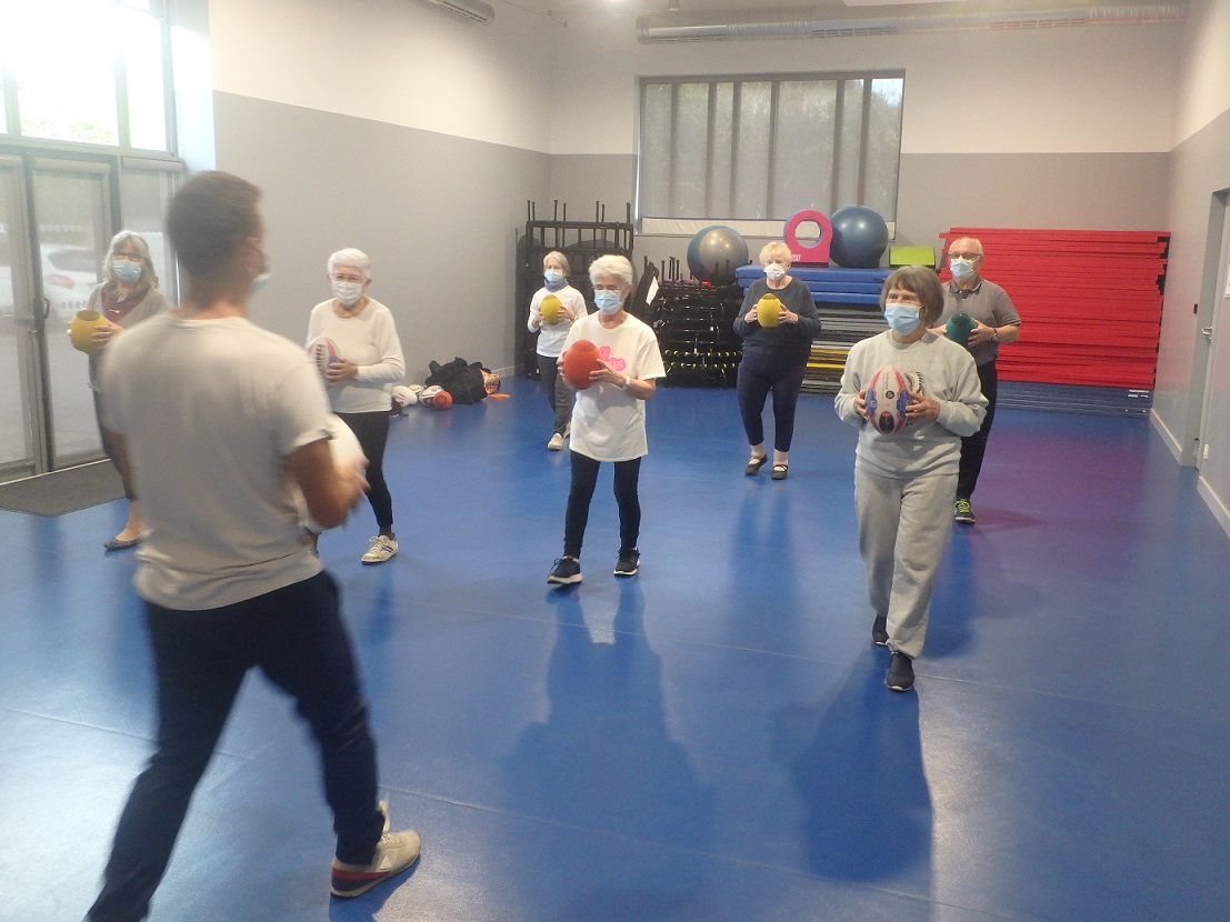 Dans le cadre de la semaine bleue les animateurs du Comité Arnaud Peronin et Marty Dubois accompagnés du Président Jacques Cavezzan ont présenté le programme Silver XIII Equilibre à un groupe de 8 séniors Genassiens dans le cadre d’un partenariat avec la CCAS de Genas. Les séniors ont découvert les activités physiques collectives avec ballon ovale et effectué plusieurs ateliers sur le renforcement musculaire, l’équilibre et la coordination dans une ambiance ludique et enthousiaste avec au programme: