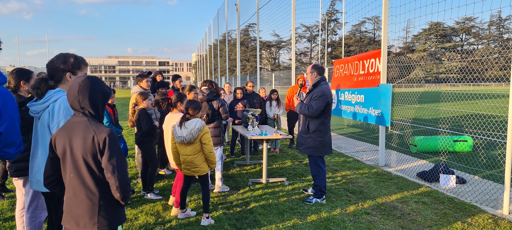 Du 6 au 9 Février se sont déroulées les rencontres Eco-citoyennes TREIZ’EN FORME organisées par les animateurs du Comité de Rugby à XIII avec les jeunes des centres sociaux de Villeurbanne (Cyprian les brosses et Les Buers) – Vaulx en Velin ( Grand-Vire) et de Décines avec le Centre social La Berthaudiere-Prainet . Toute la semaine et malgré la fraicheur de la météo, les 5 groupes avec plus d’une trentaine de participants dont 65% de filles ont été sensibilisés à l’activité physique, au rugby à XIII , mais aussi à la diététique et au bien manger pour un mode de vie équilibré avec la participation de Chloé de l’association “Sens et savoir” de Villeurbanne. Au programme, comment réduire les produits sucrés et salés, ou comment limiter le temps passé assis ou devant des écrans. Leur attention a également été attirée sur l’environnement et le comportement écocitoyen avec des quizz et des rencontres débats. Un programme varié qui s’est terminé ce jeudi après midi au stade ENNA de Villeurbanne par des rencontres inter-centres avec plusieurs ateliers physiques de plein air autour du rugby (zig-zag tenu- placage en relais, épreuve de Coup de pied de transformation – le tout après un échauffement en musique avec Eneka joueuse du LOU Rugby.! Atelier diététique avec un atelier Brownies et en dégustation un brownie à la courge et un atelier salade de fruits frais achetés la veille au marché et pour terminer un tournoi de Tag XIII et un concours de danse Tik Tok par chaque structure dans la joie et la bonne humeur générale sous un soleil généreux. Des trophées ont ensuite été remis à chaque équipe par M. Pascal Merlin, élu de la Ligue AURA et de la FFR XIII avant le goûter et boisson pour chaque participant. Bravo aux 5 équipes présentes avec une mention spéciale aux jeunes du centre social CYPRIAN les Brosses avec 90% de filles qui devancent les jeunes du centre social Grand vire de Vaulx en Velin et du centre de la Berthaudière de Décines pour la Pôle Position.Place maintenant aux vacances et Rendez vous à tous pour les vacances de Pâques avec les rencontres XIII Handi sur le handicap et le Rugby XIII Fauteuil du 11 au 14 Avril.