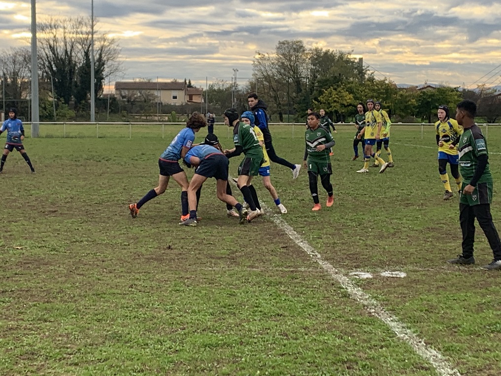 hier samedi a eu lieu au stade Djorkaeff de Décines le deuxième rassemblement U15 des joueurs des clubs du Comité Rhône et Métropole de Lyon rugby à XIII avec des équipes en provenance de Sainte Foy Rugby League, VVRL XIII – Vaulx en Velin Rugby League XIII et Décines Rugby League XIII. Un objectif commun : proposer des rencontres mensuelles et développer la pratique pour cette catégorie U15 avec des matches joués à 9 et à 13 quand l’effectif le permet. La rencontre s’est jouée à 13 joueurs dans un bon esprit. Le prochain rassemblement aura lieu le samedi 2 Décembre à Sainte Foy.![]()