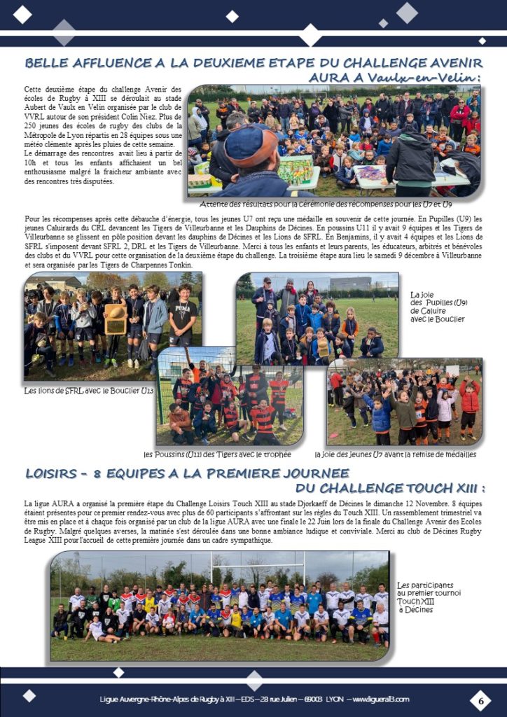 NEWSLETTER N° 126 DE LA LIGUE AURA RUGBY A XIII – NOVEMBRE 2023