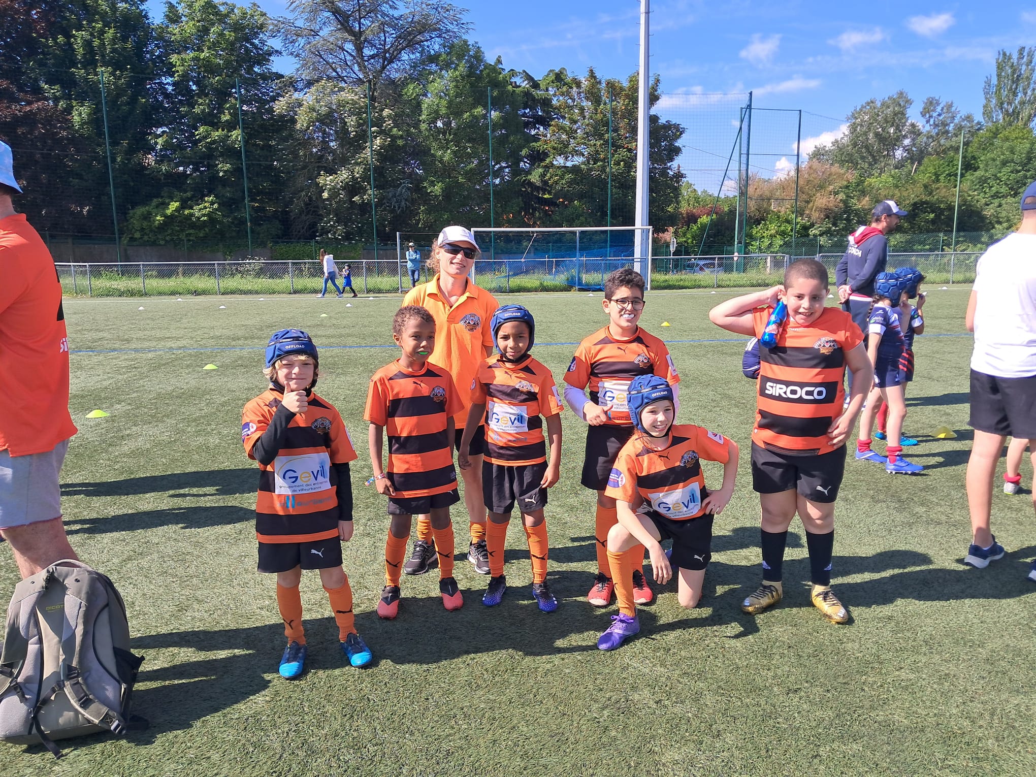 UNE BELLE AFFLUENCE A LA 6eme ETAPE DU CHALLENGE AVENIR A SAINTE FOY LES LYON: Hier samedi dès 9h30 le soleil ayant chassé les nuages de la veille, plus de 230 jeunes des écoles de rugby de Caluire, Décines, Villeurbanne, Vaulx en Velin, Francheville et Sainte Foy lès lyon se sont retrouvés au pré du Champ du Loup pour des rencontres ludiques et de bon niveau dans la catégorie U7 – U9 – U11 et U13 .