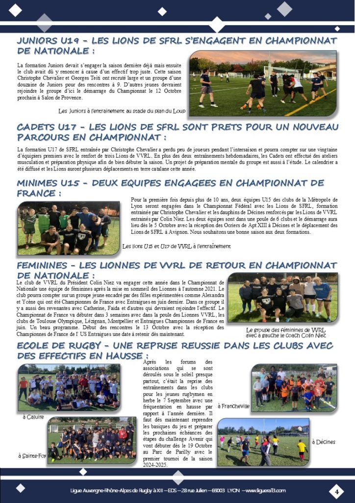 Vous trouverez ci-joint le bulletin N°134 de Septembre 2024 de la Ligue AURA de Rugby à XIII avec en Une « Saison 2024-2025- A vos marques – Prêts ..Partez ! » et aussi :